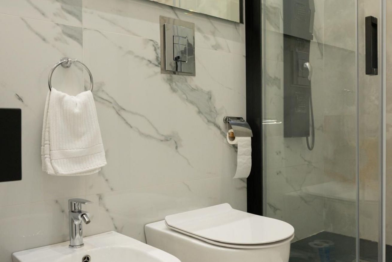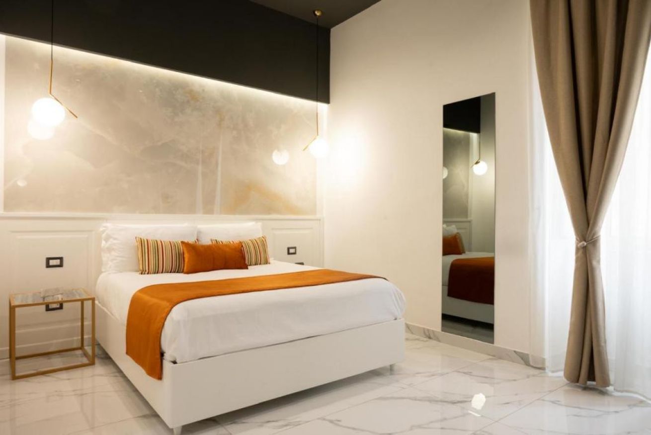 Accogliente camera tripla con letto matrimoniale e divano letto da una piazza e mezza. Dotata di finestra con affaccio sulla strada e bagno privato con doccia.