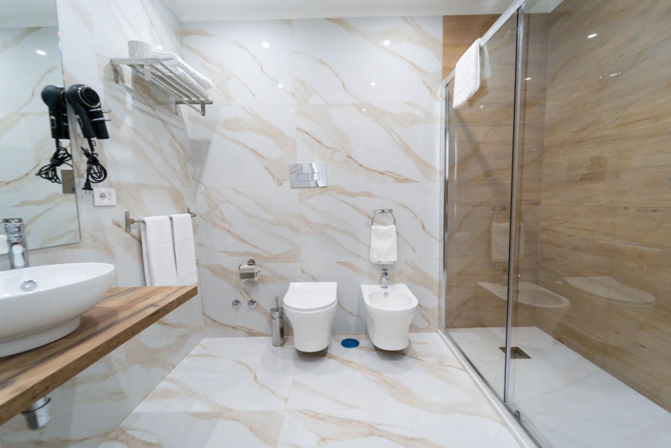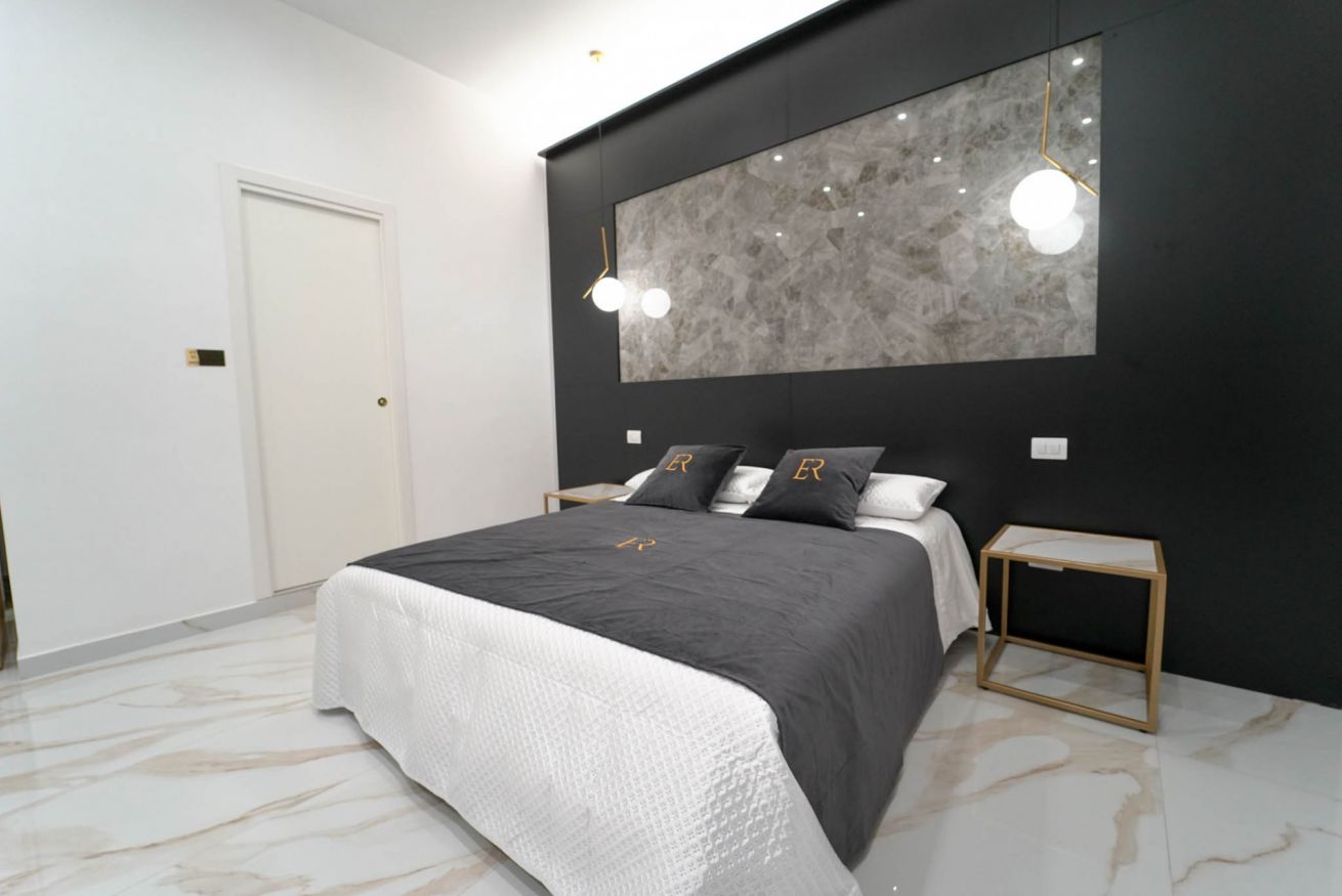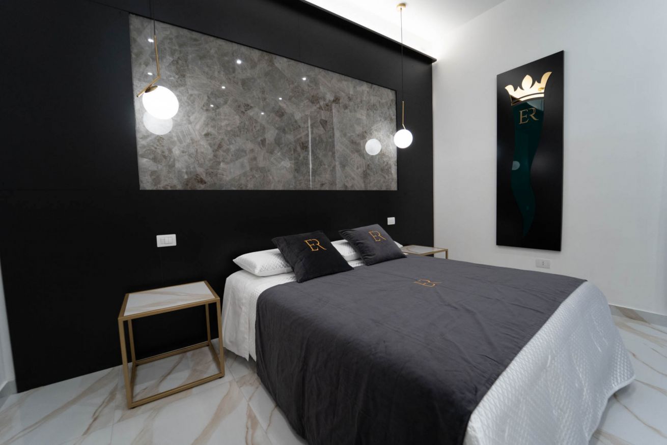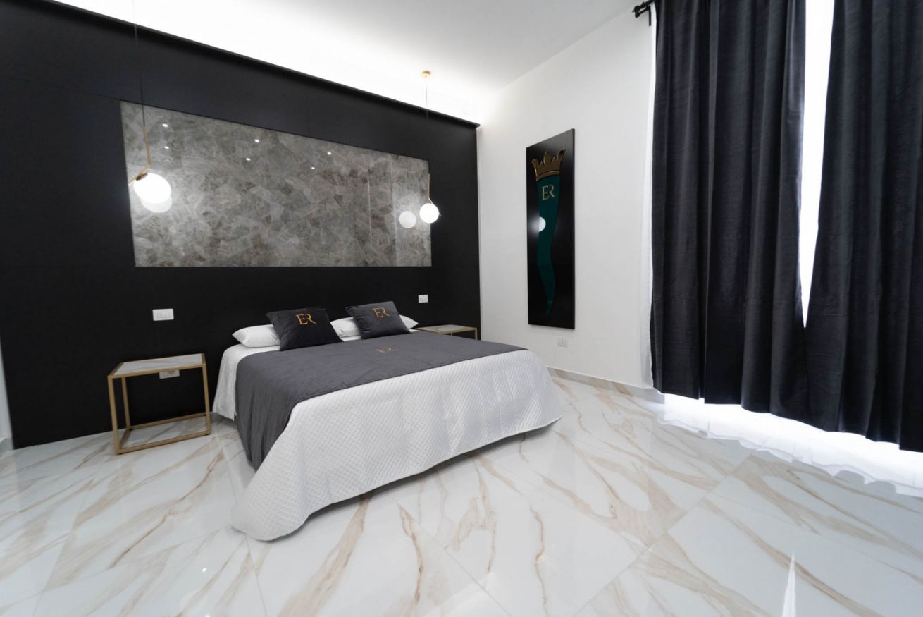 La più ampia e confortevole: camera quadrupla con letto matrimoniale e divano letto matrimoniale. Balcone con affaccio sulla strada e bagno privato con una doccia extra-large (ospita fino a 3 persone).